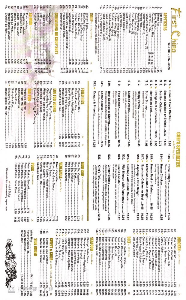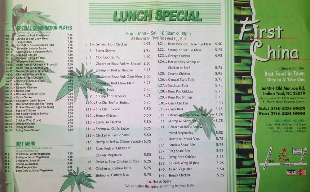First China Menu